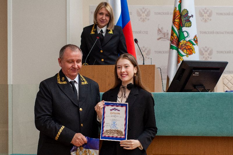 Третье место заняла Татьяна Бабенко, ученица 10 класса из МАОУ средней общеобразовательной школы № 1 с. Александровское Томской области (руководитель Монакова М.В., учитель истории). Представив себя в роли судьи, Татьяна привела рассуждения о том, какими качествами и чертами характера должна была бы обладать, занимая такую ответственную должность, при этом отводя немаловажную роль психологической стороне деятельности судьи. Разрешая спор, она внимательно бы выслушивала каждую сторону, понимая, что за каждым делом стоят судьбы людей, мечты и страхи, ведь ее задача – не просто транслировать закон, но и постараться понять человеческую душу и чувства, побудившие к действиям. Оценивали работы конкурсантов председатель Томского областного суда Школяр Л.Г, председатель Совета судей Томской области Пойда А.Н., председатель Совета Томского регионального отделения Общероссийской общественной организации «Российское объединение судей» Фомина Е.А., начальник Управления Судебного департамента в Томской области Зуев С.А., заместитель председателя Томского районного суда Томской области Шмаленюк Я.С., судья Ленинского районного суда г. Томска Родичева Т.П. Награждение участников конкурса прошло в торжественной обстановке в здании Томского областного суда с вручением дипломов и памятных подарков. Мы благодарим ребят за проделанную работу, желаем им успехов в обучении и надеемся на дальнейшую встречу не только в рамках проведения творческих конкурсов, но и в конкурсах на замещение вакантных должностей государственной гражданской службы. |