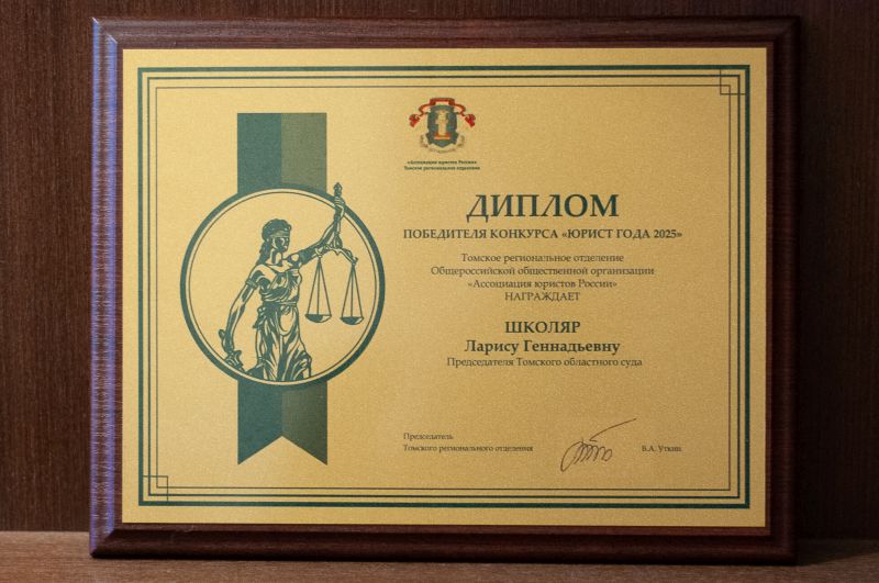 В декабре 2025 года стали известны итоги ежегодного регионального конкурса «Юрист года 2025», организованного Томским региональным отделением Ассоциации юристов России. Участники конкурса – лица, имеющие высшее юридическое образование, постоянно проживающие на территории Томской области. Выдвижение претендентов осуществляется органами местного самоуправления муниципальных образований региона, органами государственной власти, органами управления образовательных и научных организаций, коллективами организаций, общественными объединениями. Комиссией оцениваются достижения претендентов в укреплении законности и правопорядка, защите прав и законных интересов граждан и организаций, развитии юридических наук, подготовке юридических кадров. Конкурс «Юрист года» проводится в регионе с 2009 года в целях общественного признания заслуг высокопрофессиональных юристов Томской области. В 2025 году в конкурсе приняли участие 14 человек. Победителем конкурса «Юрист года – 2025» стала председатель Томского областного суда Лариса Геннадьевна Школяр, выдвинутая судейским сообществом региона. Решение было принято советом Томского регионального отделения Ассоциации юристов России. На торжественной церемонии, прошедшей 15 января 2026 года, диплом победителя Ларисе Геннадьевне вручил председатель Томского отделения Ассоциации юристов России, Заслуженный юрист РФ, доктор юридических наук, профессор, заведующий кафедрой Юридического института Томского государственного университета Владимир Александрович Уткин.