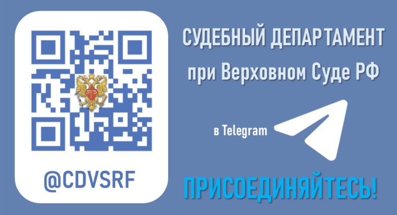 | СОЗДАН ОФИЦИАЛЬНЫЙ ТЕЛЕГРАМ-КАНАЛ СУДЕБНОГО ДЕПАРТАМЕНТА ПРИ ВЕРХОВНОМ СУДЕ РОССИЙСКОЙ ФЕДЕРАЦИИ | версия для печати |
