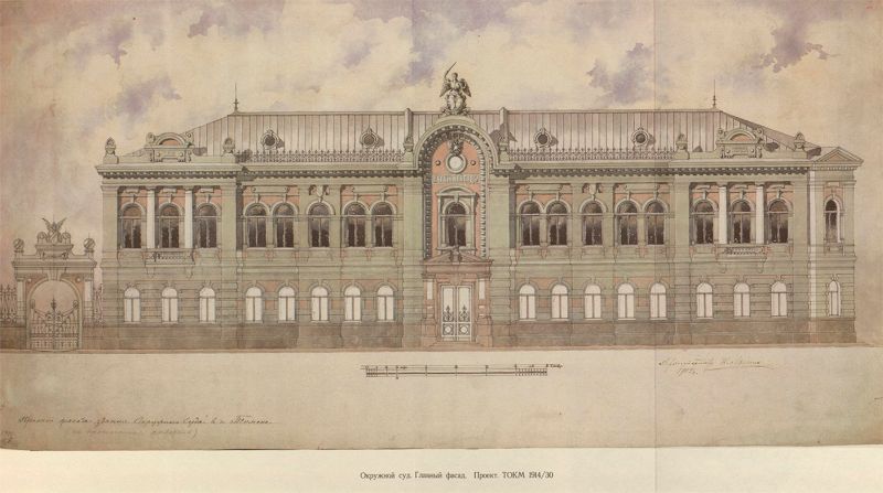 В 1904 году, когда постройка здания была завершена, «Сибирская жизнь» писала: «Здание суда производит очень хорошее впечатление: и внешний вид его, и внутреннее убранство, за самым небольшим исключением, не оставляет желать ничего лучшего. Помещается теперь суд в прекрасной архитектуре - каменном доме, на крыше которого поставлена статуя богини Немезиды, а над самим подъездом зерцало с короной и надписью золотыми буквами "закон".